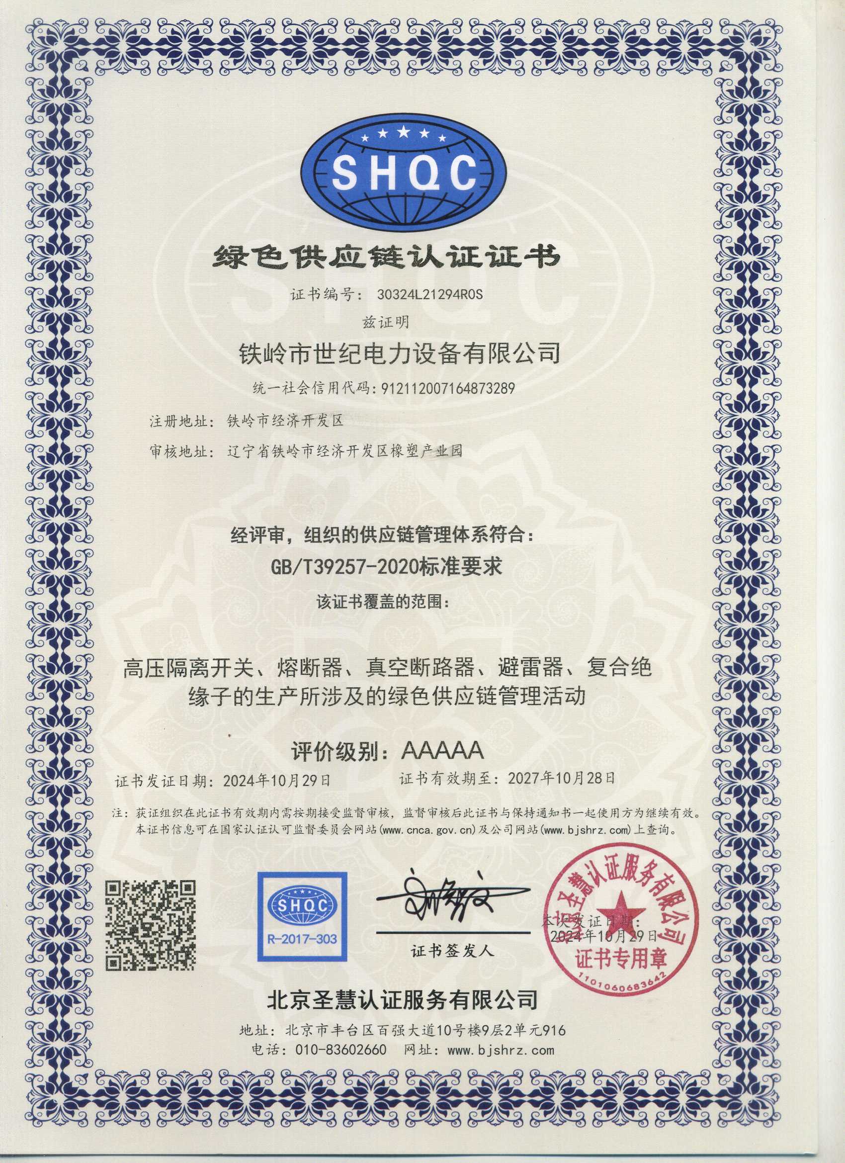 鐵嶺市世紀電力設備有限公司是集科研開發(fā)、生產制造、用戶服務于一體的國家高新技術企業(yè),始建于1999年,位于鐵嶺經濟開發(fā)區,占地面積5萬余平方米,建筑面積2萬余平方米。主要從事國家電網配套戶外高低壓隔離開關、電力電纜、變壓器成套裝置、高低壓開關柜、箱式變電站、絕緣子等產品的研發(fā)、生產和銷售。公司現有國家發(fā)明專利6項、實用新型專利9項,公司通過了ISO9001國際質量管理體系認證、ISO14001環(huán)境管理體系認證和ISO 45001職業(yè)健康安全體系認證。